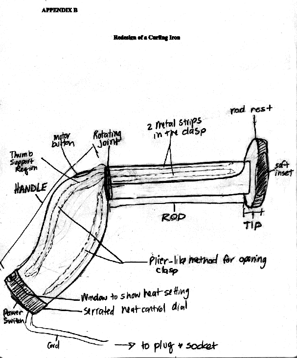 of the traditional curling iron. The redesign sketches can be seen in Appendices B, C, D, and E.